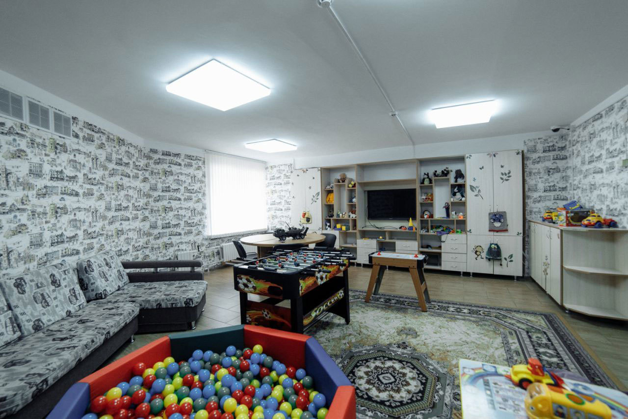 В столовой - СВЧ-печь, детские стульчики.